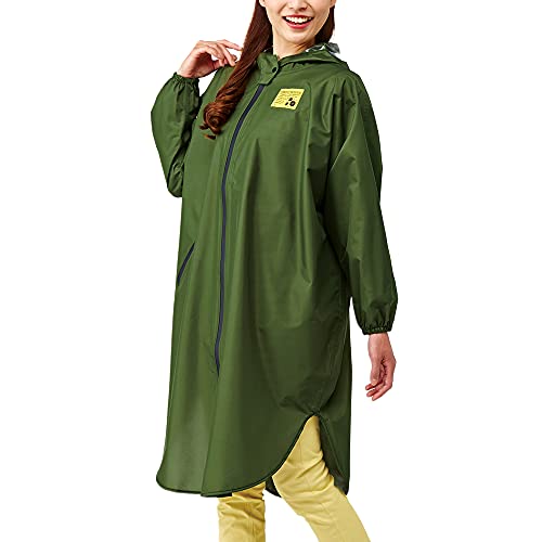 アイメディアのレインコートは、カーキ色の男女兼用レインポンチョです。撥水・防水機能を備え、自転車や通学・通勤に最適。ゆったりしたデザインで快適な着心地を提供します。