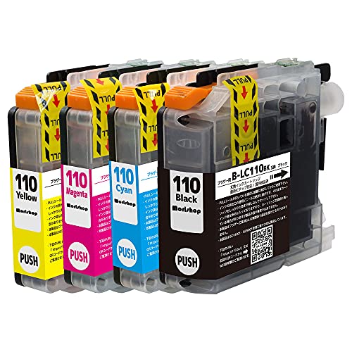 LC110 (BK/C/M/Y) 4色セットは、ブラザー用の純互換インクカートリッジです。残量表示機能付きで、Morishop製のLC110-4PKはDCP-J152N、DCP-J137N、DCP-J132Nに対応しています。