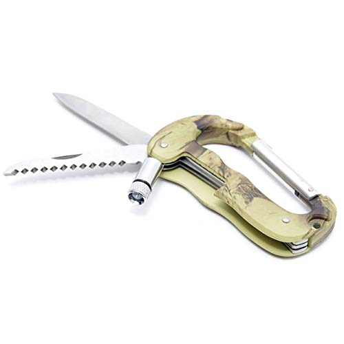 GoodsLandの小型折りたたみマルチツールGD-CALNFは、サビに強いステンレス製で、カラビナやLEDライトを搭載。迷彩デザインが特徴で、キャンプやソロキャンプに最適なおしゃれな用品です。
