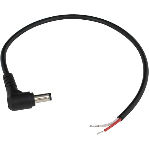 Kaito Denshi(海渡電子)のピグテールDC電源ケーブルは、外径5.5mm、内径2.5mmのL型コネクタで、長さは25cm。電子工作に適した切りっぱなしのオスコネクタです。
