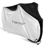 Hanmir自転車カバーは厚手で防犯・防風・防塵機能を備え、UVカットと撥水加工もされており、破れにくい設計。29インチまで対応し、鍵穴が付いていて盗難防止も安心。収納袋付きで雨雪にも対応。