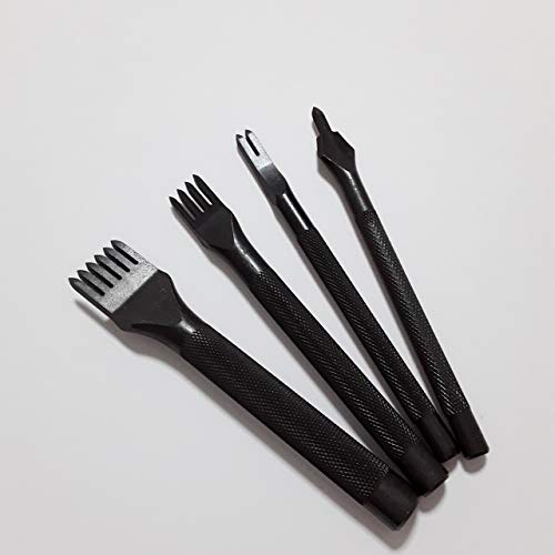 菱目打ち4本セットは、レザークラフト用の工具で、各種の革の縫製に最適です。サイズは4mmで、黒色のデザイン。しっかりした作りで、初心者からプロまで幅広く使用できます。