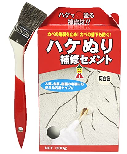 富士和産業の壁ブロック補修用DIY製品。簡単にひび割れを修復できるセメント・コンクリート用補修材。灰白色の300gで、床用・壁用の多用途に対応。便利なハケセット付き。
