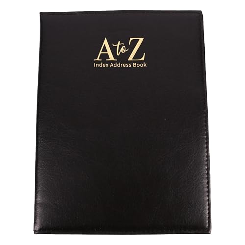 大きなA-Zインデックス付きレザールック電話帳。パッド入りで書きやすく、整理整頓に最適。スタイリッシュで実用的なデザインが魅力。