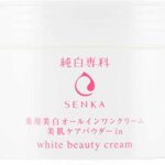 薬用純白専科すっぴん純白クリームは、100gのオールインワンタイプの医薬部外品です。美白成分を含み、肌のトーンを均一に整え、保湿効果もあります。手軽に使えるので、日常のスキンケアに最適です。