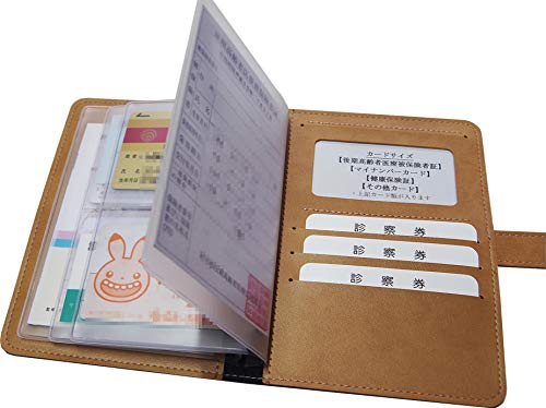 年金手帳・保険証・診察券ケース(ABH-14C)【日本製 自社工場生産品】 (ブラウン×キャメル/フラット合皮) 高価買取中