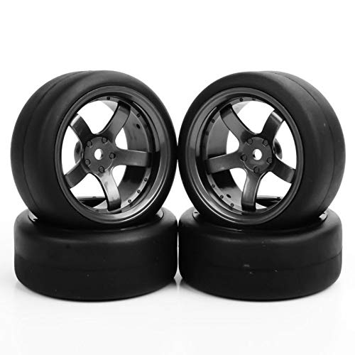 Mxfans 4個入290142 れ ブラック ドリフトスリックタイヤ RC 1:10オンロードレーシングカー&ドリフトカーのため 5スポークRCホイールリム