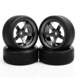 / ノーブランド品 ドリフト用ハードタイヤとガンメタ5スポークホイール RCカー用 ホイール セット 4本