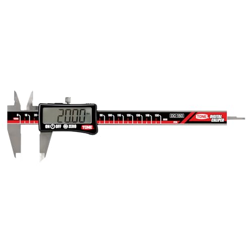 トネのデジタルノギスDC-150は、全長235mm、最大口開き150mmの高精度測定器です。液晶ディスプレイで見やすく、簡単に数値を読み取れます。
