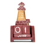 赤レンガ灯台木製ブロックカレンダーは、レトロなデザインが魅力のインテリアアイテムです。木製のブロックを使って日付を変えられ、毎月のカレンダーとしても活用できます。