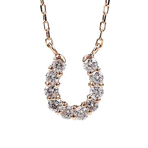 PLUSTERの馬蹄ネックレスは、0.1ctのダイヤモンドを使用したK10ピンクゴールド製。シンプルで人気のデザイン、40cmのチェーン付きで、女性への誕生日プレゼントやギフトに最適なジュエリーです。