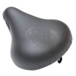 サドルカバーは電動アシスト自転車の大型サドル用で、防水機能付き。かわいいスヌーピーとチャーリーブラウンのデザインが特徴。色は黒と茶あり。