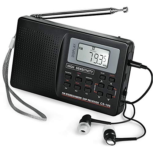 ZHIWHISのワイドバンドポータブルラジオは、AM/FM/SW/LW対応で高感度受信。USB電池式、目覚まし時計機能付き、大画面表示。ステレオイヤホンと電池も付属しています。
