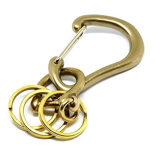 BRASS STOREのオール真鍮製カラビナキーホルダー(大サイズ・馬蹄シャックル)は、ゴールドカラーで耐久性抜群。ダブルリングのキーリングとしても使用可能で、便利なベルトループに対応。