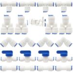 CESFONJER 浄水器接続部品、整水器用付属品、RO給水管継手、水パイプ用1/4″押込みストレートコネクター、20(Y + T + I + Lタイプコンボ+シャットオフバルブ)の水管継手セットを接続するためのプッシュインの高価買取ITEM