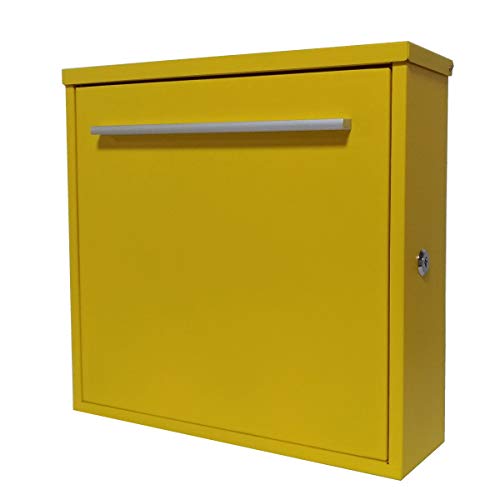 アイホーム(Ihome)の郵便ポストpm34 pm344イエロー。サイズ:奥行12cm、高さ34.5cm、幅36.5cm。高級キーホルダー1個、カギ2本、アンカープラグ4本、ネジ4本、ゴム栓4個付き。