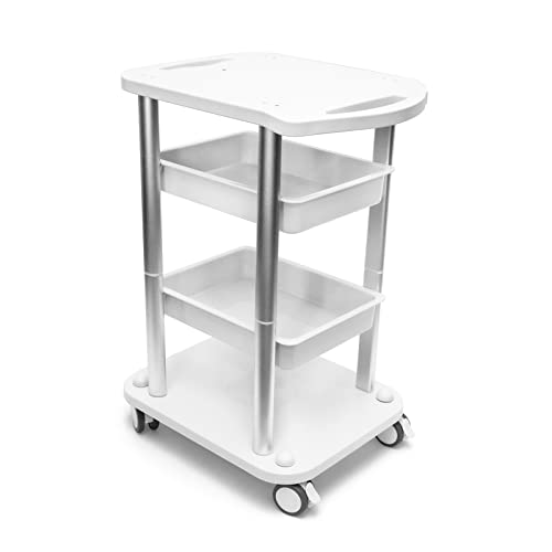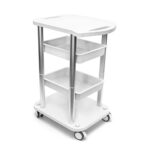 フェイシャルトロリービューティーサロンカートは、4層トレイズでスライドバー機能を搭載。ALフレームとホワイトABSホイール付き、Elitzia ETTRO5Sモデル。持ち運び便利で、サロンでの使用に最適です。