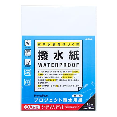 オキナ 耐水紙 プロジェクト 撥水紙 A3 無地 30枚 PW3266の製品情報