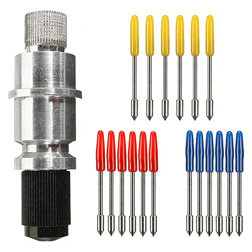 CJRSLRB CB09 ブレードホルダーベースは、30/45/60度のカッティングブレード18枚が含まれ、シルエットカメオ1/2/3、ポートレート、Curio、Graphtec 6000、CE 5000-60プロッターに対応します。