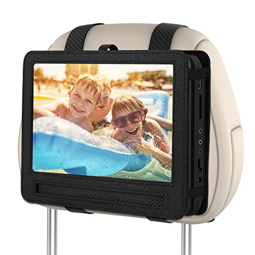 車のヘッドレストマウントホルダーストラップは、10インチから10.5インチのポータブルDVDプレーヤーに適しており、スイベル&フリップスタイルで便利です。