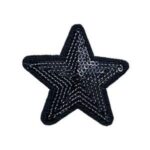 ブラックの星型ワッペン、スパンコール装飾付き。アイロン接着が可能で、手芸やデコレーションに最適。カスタムデザインも楽しめる、使いやすいアップリケアイテムです。