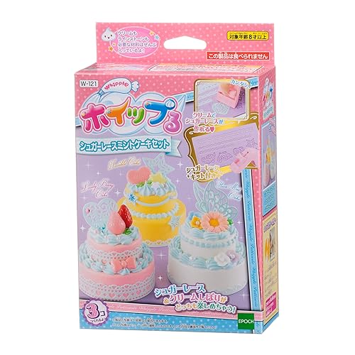 ホイップる シュガーレースミントケーキセット W-121は、8歳以上向けのデコレーションおもちゃです。パティシエ気分でケーキを作れるメイキングトイで、エポック社の製品です。
