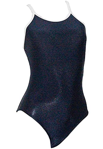 CNYEの女の子用ワンピース水着。学校用として適した無地のデザイン。サイズL (身長175-180cm)、ダークブルー。小学校やプールに最適なオールインワンのスイムウェアです。