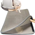 Authda 猫の砂取りマット 二重構造 滑り止め機能 防カビ防臭防水 飛び散り防止マット 猫 トイレ マット 清潔簡単 脱臭・抗菌マット 砂取りマット 再利用可能 ペットキレイ 四季適用 (40 x 60cm, グレー)