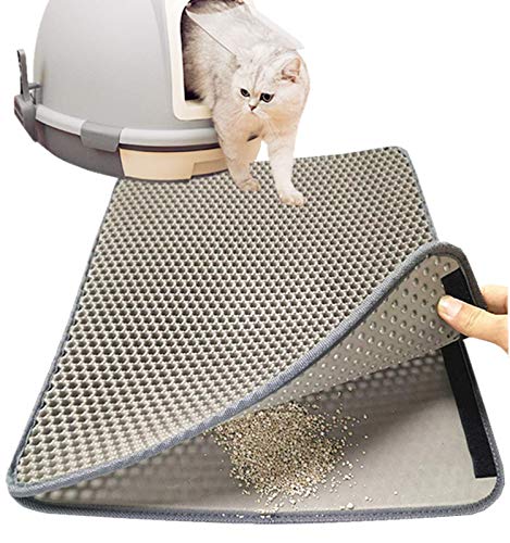 / Authda 猫の砂取りマット 二重構造 滑り止め機能 防カビ防臭防水 飛び散り防止マット 猫 トイレ マット 清潔簡単 脱臭・抗菌マット 砂取りマット 再利用可能 ペットキレイ 四季適用 (40 x 60cm, グレー)