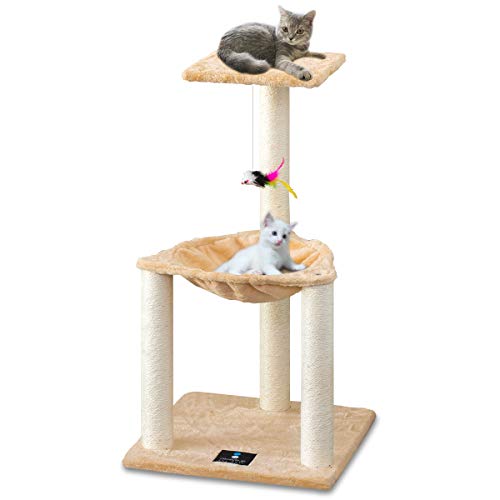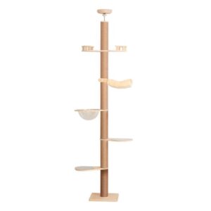 ottostyle.jpのキャットツリーKITTENは、タワータイプでベージュ色。爪とぎやハンモック、キャットポール付きのコンパクト設計。子猫やシニア猫に最適な製品です。