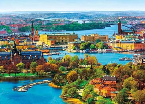 アップルワンの500ピースジグソーパズル『北欧の輝き ストックホルム旧市街』は、サイズ53×38㎝で日本製です。美しい風景を楽しみながら、手軽に組み立てることができます。