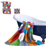 バスタオル3点セット、装飾的な繰り返しのオレンジとピンクのオンブレイラスト。100%マイクロファイバー素材。サイズ:W20″xL39.3″、W8″xL23.5″、W10″xL10″。バスルーム、オフィス、ジムに最適。