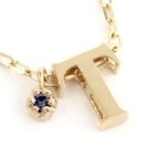 PLUSTERのイニシャルアンクレットはK10イエローゴールドに美しいサファイアチャームTをあしらった、女性にぴったりのジュエリー。ギフトボックスセットで、誕生日や特別なプレゼントにも最適です。
