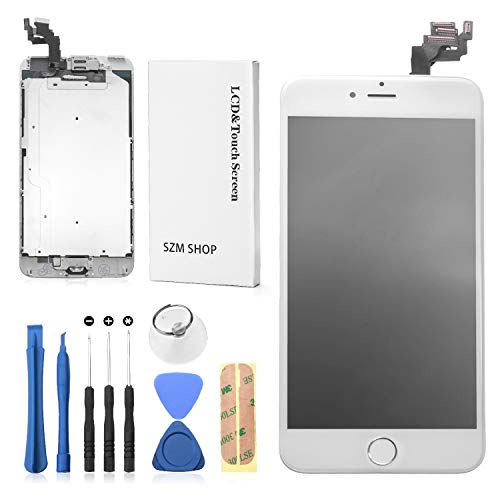SZM iPhone6 Plus 修理用液晶パネルセット(白)。LEDスクリーン、スピーカー、フロントカメラ、ホームボタン付きで簡単交換可能。iPhone6 Plusの画面交換に最適なアクセサリー。