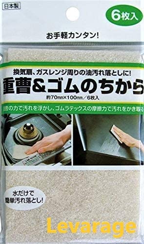 重曹とゴムの力で油汚れを簡単に落とす6枚入りのシート。換気扇やレンジ周りの掃除に最適で、水だけで効果的に汚れを除去します。日本製で安心して使える製品です。