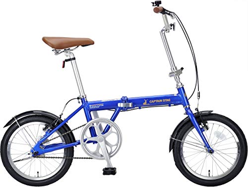 キャプテンスタッグのAL 16インチ折りたたみ自転車は、アルミフレームで重量約9.9kg。前後V型ブレーキ・SHIMANOパワーモジュレーター搭載。高ギア比設定・前後泥よけ付きのモデルです。