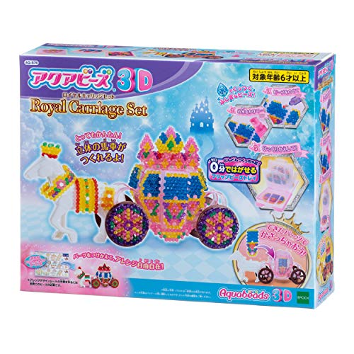 アクアビーズ オールインワンセット【3D ロイヤルキャリッジセット】は、6歳以上向けの水でくっつくメイキングトイです。STマーク認証を受け、安全に楽しめるエポック社の製品です。