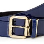 エスエスケイのエナメルベルトは、無地のネイビーで幅40mm、長さ110cmのFREEサイズです。シンプルで使いやすく、さまざまなスタイルに合わせやすいデザインです。