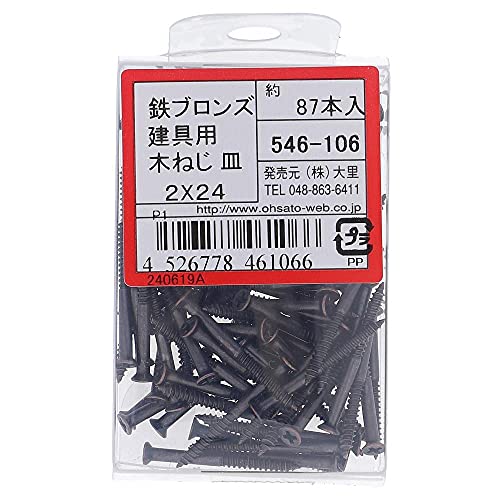 大里 鉄ブロンズ 建具用木ねじ 皿 2X24は、耐久性に優れた鉄素材にブロンズメッキ仕上げ。サイズは2mmの直径、24mmの長さ。家具や建具の取り付けに最適で、美しい仕上がりを実現。