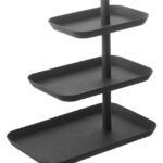 山崎実業の3段トレー「タワー ブラック」は、約W24.7XD15.7XH25.7cmの小物入れで、アクセサリー収納に最適です。シンプルでスタイリッシュなデザインが特徴です。
