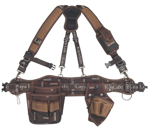 多機能なホルダーツールベルトで、DIYや建築作業に最適。電工用のポーチや腰袋として、工具や小物を収納可能。スマートフォンも収納でき、便利なサスペンダー付き。