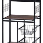 不二貿易のレンジ台(幅60×奥行46×高さ103.5cm)はブラックとブラウンの2色展開。スライド棚とキャスター付きで収納力抜群のキッチンラック。レンジワゴンとして便利に使えます。