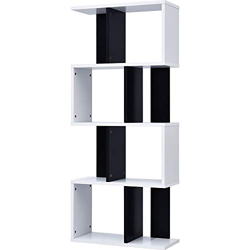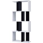 ワイエムワールドの本棚は、スリムなデザインで4段構成。サイズは幅59cm、奥行24cm、高さ138cm。木製でホワイトとブラックの2色展開。収納やディスプレイに最適です。