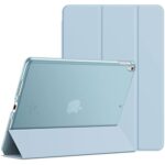 JETechの三つ折スタンドケースは、iPad Air 3(2019)とiPad Pro 10.5(2017)に対応。オートスリープ機能付きで、軽量&スタイリッシュなライトブルーが魅力。出張や旅行にも便利。