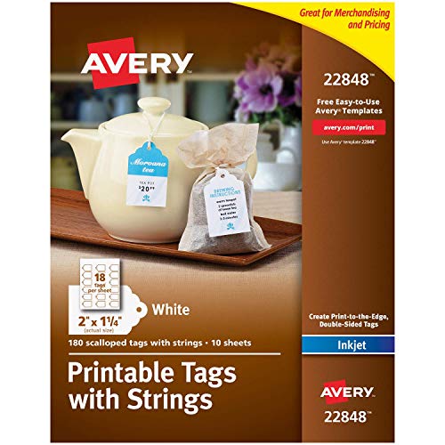 Averyスカラップタグは、2×1.25インチのサイズで180枚入り。優れた耐久性と印刷のしやすさを兼ね備え、手作りのギフトや商品ラベルなど多用途に活用できます。