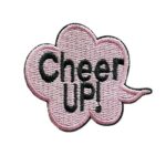 吹き出しデザインの刺繍ワッペン「Cheer UP!」は、アイロン接着で簡単に装着可能。手芸やデコに最適なカスタムアップリケで、かわいさを添えるアイテムです。