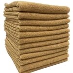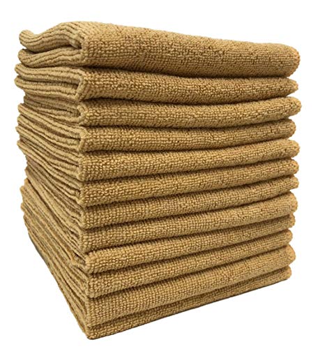 マイクロファイバーふきんTARO FIBERは、30x30cmのモカ色で、12枚セット。超吸水性、速乾性があり、油汚れやほこり取りに最適。厚手の小判型クロスで、掃除やキッチンにおすすめ。