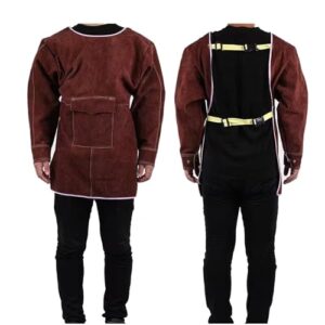 [IKENOKOI] 溶接用エプロン 防護服 作業 牛革製 耐磨耗 断熱 防炎 やけど対策 135cm(肩幅55cm ブラウン)