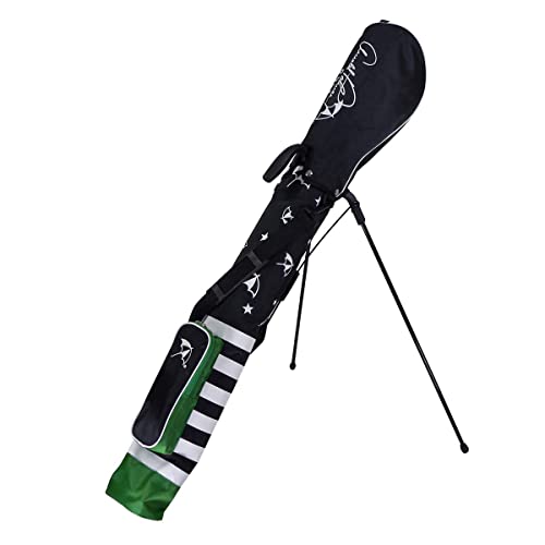 アーノルド・パーマーのスタンド式クラブケースAPCC-04SJは、ブラックのボーダー柄デザインで、セルフスタンド機能を搭載。軽量で持ち運びやすく、ゴルフクラブをしっかり保護します。