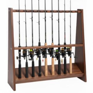ロッドスタンド 10本立て 床置き 台形デザイン 10ホール 釣り竿収納・ディスプレイ 胡桃色(ウォルナット)釣り具の保管に